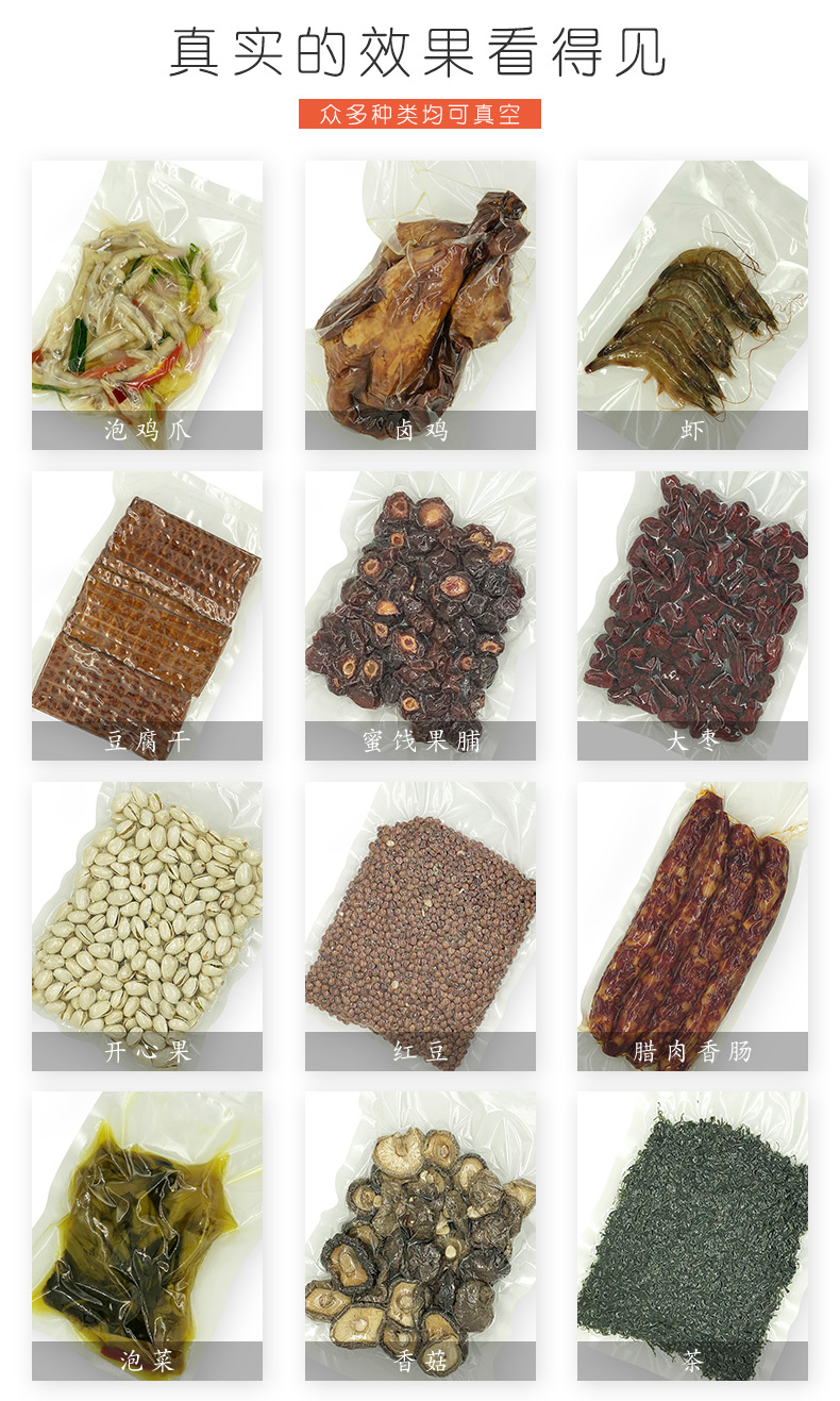 全自動真空包裝機,減少人力,提高產能,適合中、大型工廠使用。采用了微電腦控制技術,工作時間更加準確,抗干擾能力更強,性能更加穩定。機器只須按下真空室蓋即可自動按設定的程序完成抽真空、封口、印字、冷卻和排氣的全過程。經過包裝后的產品可防止氧化、霉變、受潮,可保質和保鮮,延長產品的儲存期。